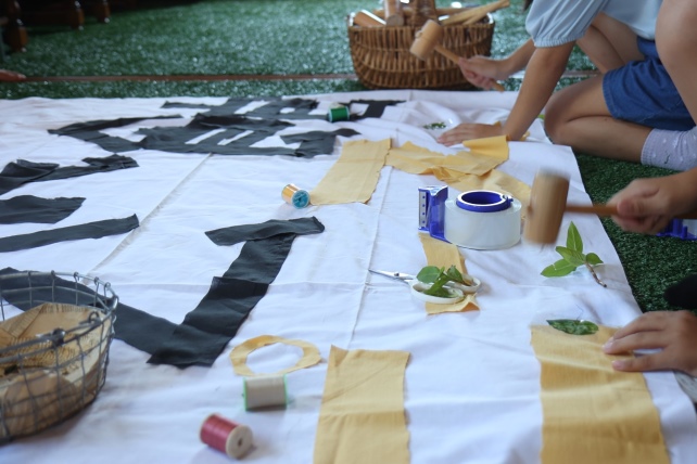 ワークショップ風景 ~大きな布にみんなでたたき染め