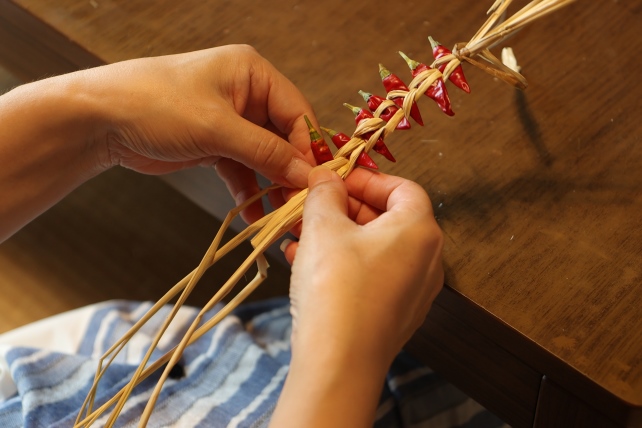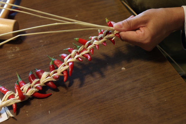 吊るし唐辛子は、台所に吊り下げて、お料理に使ってもよし。