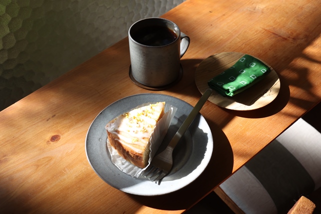 合間に、今の季節らしい、日の差し込む店内で、レモンケーキもいただいて。