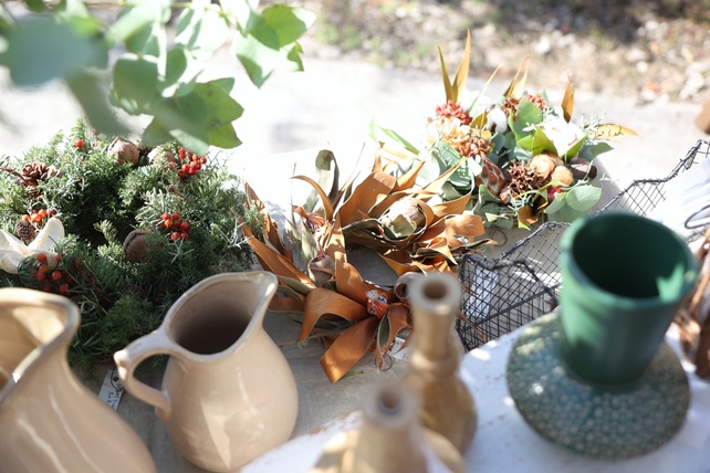 てらもとおやつ店さんで、しめ飾りやしめ飾り風箸置きなど、お正月の花たちを、販売させていただく予定です。