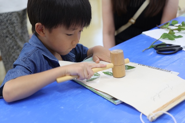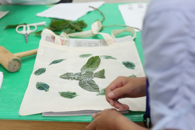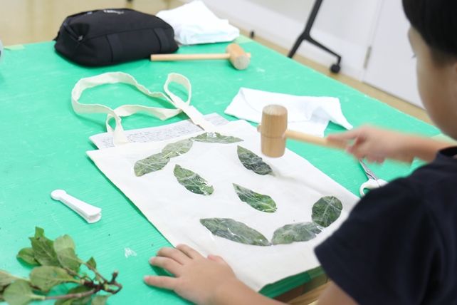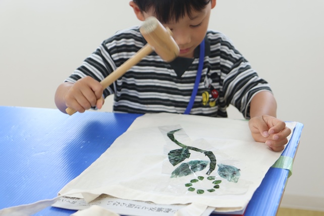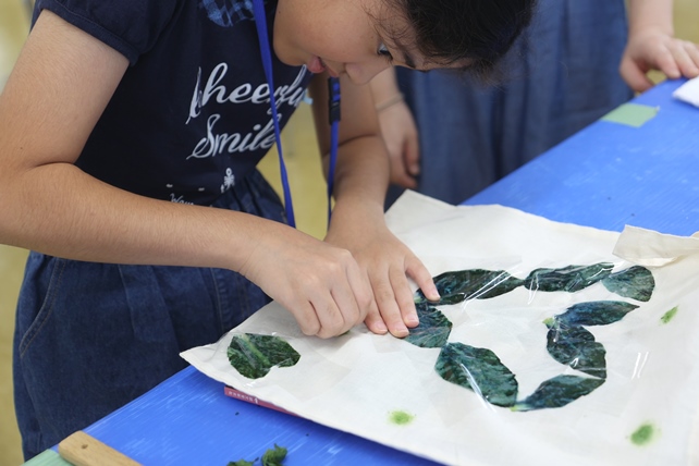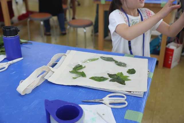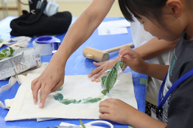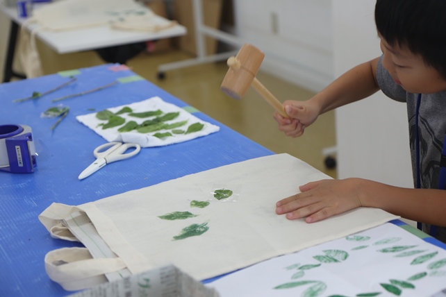お持ち込みのタペストリーに葉の形をうつす子も。