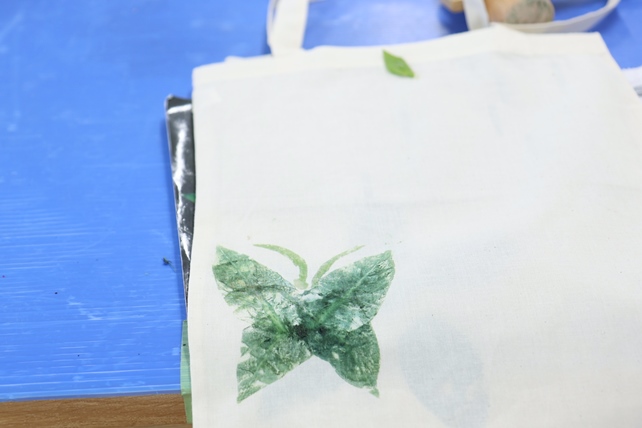 タデアイのたたき染め。