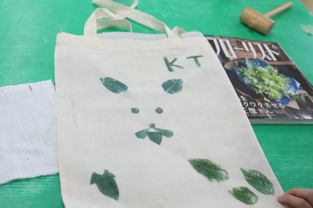 好きな形に葉を並べて、お顔を作ったり、