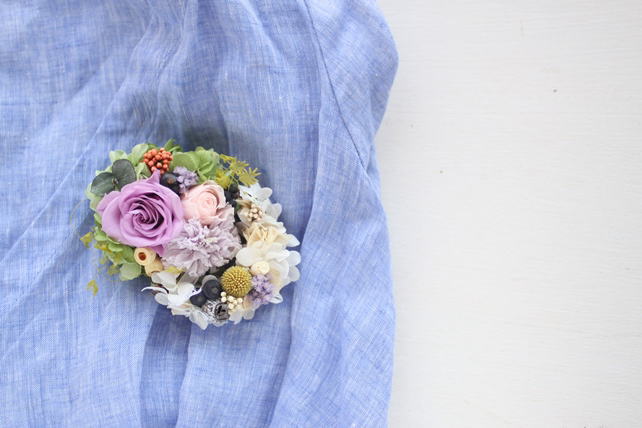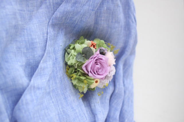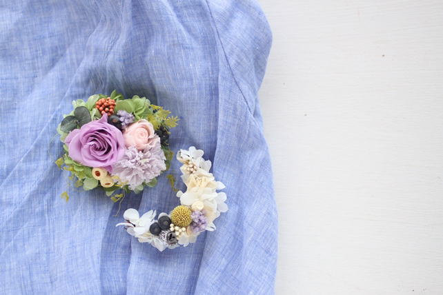 雰囲気の異なる2つのコサージュは、その時の気分で、どちらかを身に着けていただくこともできますが、