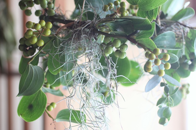 ゆらりと垂れ下がる実、エアプランツのスパニッシュモスが動きを出しています。