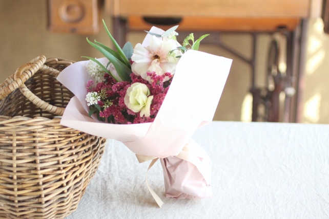 「卒業式の日にお友達に渡したい」、と高校生からオーダーいただいた小ぶりな花束。