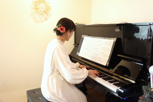 高砂のterhoさんでは、今週来週と何度か、terhoさんからお客様へのクリスマスプレゼントとして、いろいろな方がピアノの生演奏をされています。