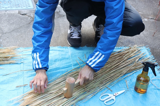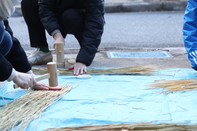 この日も、皆さんで、とんとんとんとん!藁を叩くところからはじめて。。。