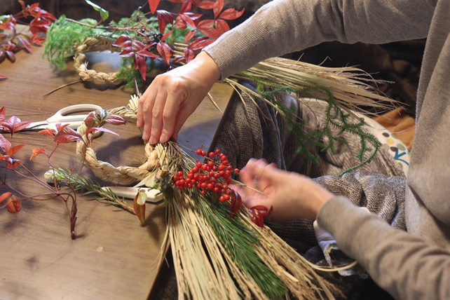 この日も、形も、雰囲気も、異なる、素敵なしめ飾りが生まれました。