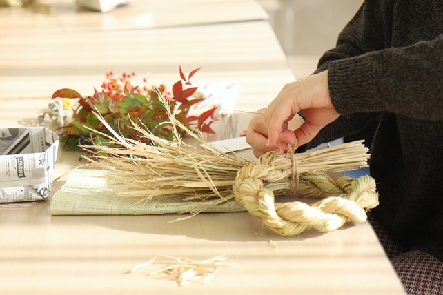 みなさんで、「結構力がいるのね~」と、藁を一緒に綯い、