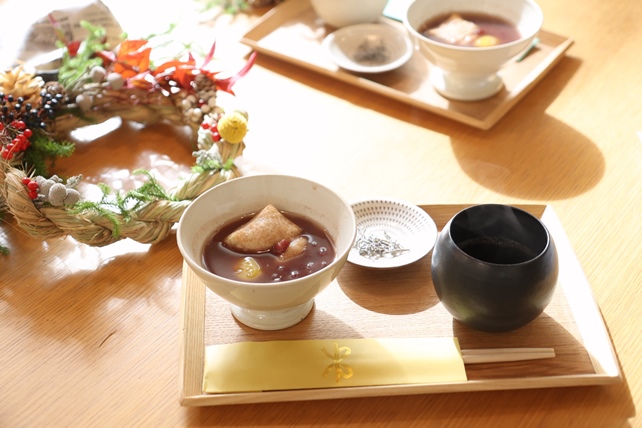 terhoさんの美味しい玄米餅のおぜんざいとお茶をいただきました。