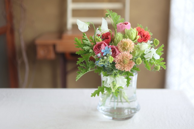 「明るめの色合いでもちが良いお花で、後はお任せで」、とご希望いただきました。