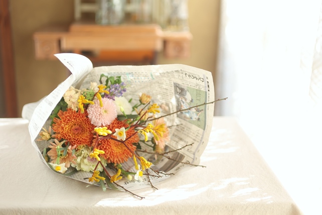 「自宅に帰ってすぐに飾るので新聞などの簡易包装で!」
