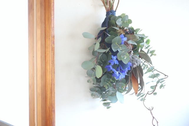 新居に飾るスワッグとして、束ねさせていただきました。